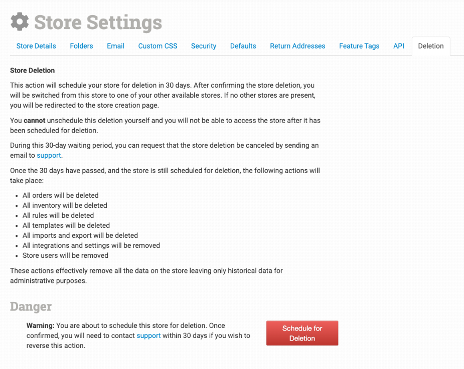 You can schedule your store for deletion using this tool. Once you have opted to delete your store by pressing the Schedule for Deletion button, your store will be deleted in 30 days. Please review our How to Delete a Store guide before the deletion process.