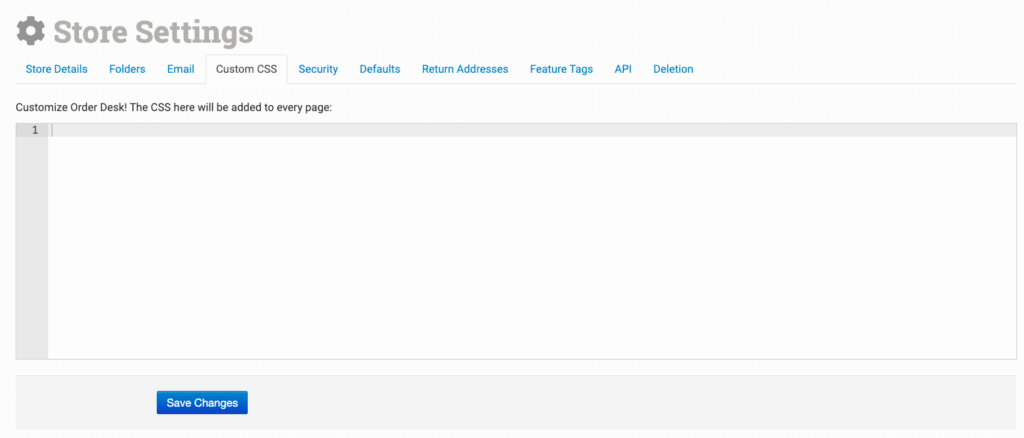 Store Settings is where you can manage general settings for your Order Desk account. These settings include emails used for customer facing notifications as well as admin emails for communication with Order Desk, folder management for customizing where your orders are stored in the app, adding CSS to customize views, enabling certain security checks and setting up return addresses, among other settings which will be discussed in more detail in this guide.