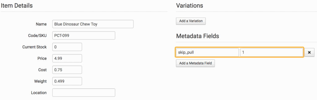 Items with skip_push added will not receive any inventory updates from Order Desk when the inventory in your shopping cart is updated.