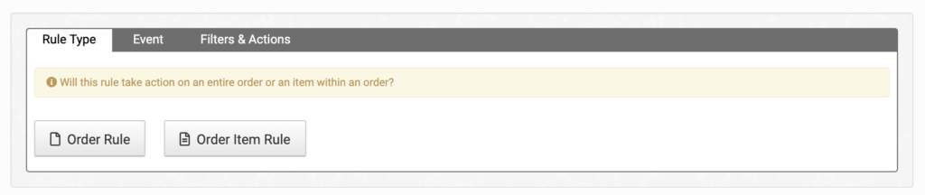 If you select Order Item Rule type, these are the actions that will be available in the rule. They will only affect any items in the order that the filters apply to. If no filters are added, they will affect every item in an order.