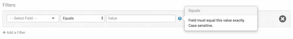 Some fields in Order Desk—variations, checkout data and order and item metadata—use your own custom field names. When adding filters for these fields, an additional Field Name box is included. Add the field name you use on your orders or items in this box. It must be an exact match and is case sensitive.